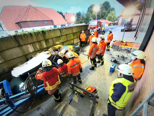 "Verkehrsunfall - PKW unter landwirtschaftlichem Arbeitsgerät - eine Person eingeklemmt"! Mit dieser Meldung wurden die Kameraden der Ortsfeuerwehr Diemarden am 27.08.2021 zu einer Einsatzübung gerufen.