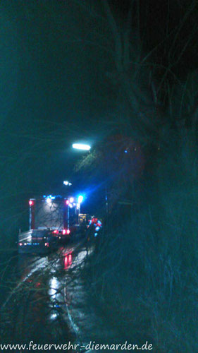 Um 17:47 Uhr wurde die Ortsfeuerwehr Diemarden mit dem Stichwort "Sturmschaden - Umgestürzter Baum auf Fahrbahn" in die Göttinger Straße alarmiert. Eine großer Ast war von einem Baum abgebrochen und ragte im Kurvenbereich auf die Straße.